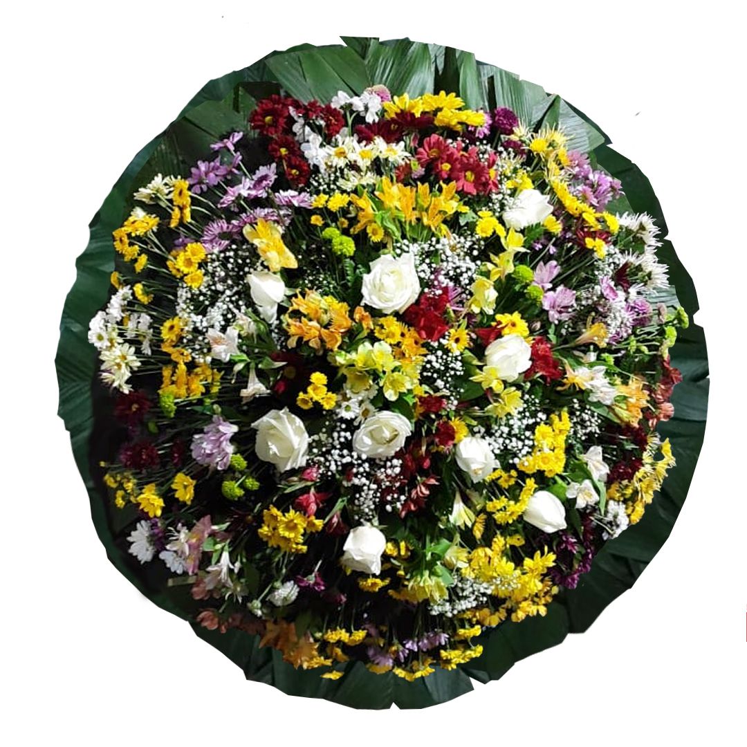 Coroa Cores com Flores do Campo, Astromélias, Rosas e folhagem selecionada